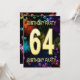 Add a name to customise this unique party invitation. 64th birthday party invitation with fireworks and bubbles. Add your details inside to create a perfect fun invite. Light up the sky with these glorious fireworks. An invitation to a birthday party that has style and loads of fun.