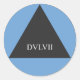 Round Zap Sticker with Black Triangle with Blue background and Roman 657 in White.