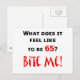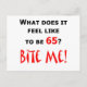 What does it feel like to be 65? Bite Me! Humourous design for the 65 year old who's not happy about turning 65 and a warning sign for others. Makes a great 65th birthday gift.