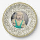 65 Your Photo Random Number Pattern Gold/White Paper Plate