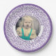 65 Your Photo Random Number Pattern Purple/White Paper Plate
