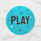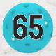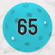 Close-up of a turuqoise blue pickleball for a 65th birthday.