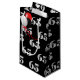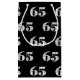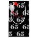 Happy 65th birthday with red, white and black balloon bouquet on black background.
