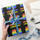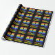 This fun, cheerful, and colourful birthday wrapping paper design features a large number "65" and the message "HAPPY BIRTHDAY,", both having a rainbow spectrum gradient inspired pattern colouring, along with a bold yellow customisable recipient name. The background is coloured black. Fun birthday themed wrapping paper like this might be used when giving a gift or present in celebration of somebody’s 65th birthday. [~Z0000475]