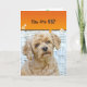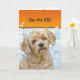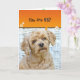 Cute brown poodle with daisies on wicker chair for 65th birthday,