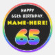 65th Birthday: Colourful Rainbow # 65, Custom Name Classic Round Sticker