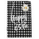 White daisy on black and white gingham pattern for 65th birthday.