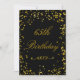 Women's glamourous gold confetti 65th birthday party personalised custom invites template. Elegant, feminine, chic, golden glamour themed invitations for a woman's 65 years old birthday party celebration with a pretty gold leaf confetti border frame image on a classy black background with stylish, fancy, curly, cursive, swirls and curls script. These beautiful, ornate, stunning, girly, modern, contemporary, fashionable, awesome, trendy, sparkly, cool, sophisticated, original and unique, formal, glitz and glam custom invitation templates for luxury, lavish, fun, birthdays for women are decorated on both sides / have double sided printing / printed on front and back. All of the text is fully customisable to meet your needs and you can change the font style, colour and size of font if you desire. Choose from several high quality paper types. If you need any assistance customising your product please contact me through my store and I will be happy to help. PLEASE NOTE: All invitations on Zazzle have flat printed images.