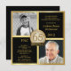 Create your own elegant 65th Birthday Surprise Party Invitations. Classic executive style black and gold for men or women, personalised with double photo frame inserts for "Then & Now" pictures -- Customise the name, date, and details for your special celebration. Can be easily customised for other special occasions, corporate events, retirement, and milestone celebrations -- 21st, 25th, 30th, 40th, 45th, 55th, 65th, 75th, 85th, 95th. **NOTE: Sized for SQUARE invitation cards -- extra postage required. Other sizes and styles available.