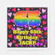 This colourful and joyful birthday-themed paper napkin design features a large number “65” having a rainbow spectrum gradient inspired pattern. It also features the message “Happy 65th Birthday,”, and an editable name. The background features a pattern of purple, pink, and red heart shapes of various sizes. Happy, fun paper napkins like this might be fun to use at a birthday party being held to honour somebody’s 65th birthday. [~Z0000550]