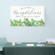 Elegant winter watercolor green holly sprigs create a beautiful holiday greenery border at the bottom of this birthday party welcome banner, green holly is the December birth flower. A trendy font combination gives it a modern vibe. All of the text is editable.