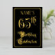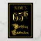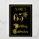 The front of this ornate and elegant foil sixty-fifth birthday celebration/party invitation design features the message “65th Birthday Celebration” in opulent script-style text. It also has an editable name. The background of the front is coloured black by default (although it can be customised to a different colour). The back features personalised details about the event, such as the date, time, location, and any other information that may be relevant. Opulent, fancy, editable invitations like these might be used to invite guests to a birthday party being held in celebration of somebody’s sixty-fifth birthday. [~Z0000589]
