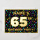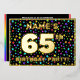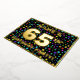The front of this joyful sixty-fifth birthday celebration/party foil invitation card design features a customisable name, a large number “65th”, the message “BIRTHDAY PARTY!”, and a border. The background of the front has an exciting, multicolored star shapes pattern. The back features personalised details about the event, such as the date, time, place/venue, and any other information that may be relevant. Customisable invitations like these might be a fun way to invite guests/attendees to a birthday gathering/party being held to celebrate somebody’s 65th birthday. [~Z0000600]