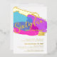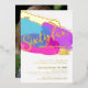 Bold abstract art brush strokes in bright pink, purple and blue with gold foil or your own foil colour photo template 65th birthday party invitation. Personalise this sixty five gold script art milestone birthday invitation with your own birthday party event details, and a photos of your birthday girl on the reverse. Other years colours and matching items are available. © Original design by Sarah Trett for www.mylittleeden.com on Zazzle.