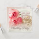 A beautiful delicate image of a rose in soft pink tones. In the background is a string of pearls. The whole effect is softened by a delicate feather. A delightful 65th birthday party invitation. Change the back to your own party details