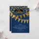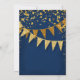 Celebrate the special woman in your life reaching a wonderful milestone. Throw a party that shows she's every bit as beautiful as she ever was. For a mother, grandmother, sister, aunt or friends 65th Birthday Party with glitz and glamour! Sleek. Modern. Chic. Understated glam - with glittering pennant banners in two shades of golden glitter with sparkling twinkling falling confetti in various sizes and shade of gold. Sparkly starburst shining stars highlight the sparkle. A very contemporary typography text layout that is anything but traditional. It is simple and short. It says to your guests, "We're throwing a party and it will be the party of a lifetime!" For the elegant but non-traditional bride and groom. COLORS: deep sapphire cobalt royal blue and gold, golden glitters. Especially suited for fall or winter weddings, New Year's Eve Parties, Birthday parties and Anniversary party announcements.