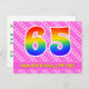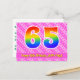 65th Birthday: Pink Stripes & Hearts, Rainbow 65 Postcard