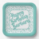 65th Birthday Random Number Pattern Teal/White Paper Plate