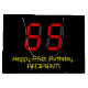 This nerdy and silly birthday-themed gift bag design features a large number "65" having a red seven segment digital display inspired appearance, along with the message "Happy 65th Birthday," and a personalised name in geeky retro style yellow text, on a black coloured background. Customisable gift bags like this might be used for wrapping presents or gifts being given to celebrate somebody’s sixty fifth birthday. [~Z0000389]
