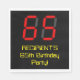 This fun and silly birthday paper napkin design features a large number "65" having a red seven segment digital display style look, along with an editable name and the message "65th Birthday Party!" in geeky computing-inspired yellow text, on a black coloured background. Fun, customised birthday themed paper napkins like this might be used at somebody’s 65th birthday celebration. [~Z0000388]