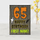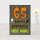 The front of this spooky and scary Halloween birthday themed greeting card design features a large number "65" and the message "HAPPY BIRTHDAY,", plus a custom name. There are also depictions of a bat and a ghost on the front. The inside features a customized birthday greeting message, or could perhaps be cleared and left blank if a message is to be written by hand instead. A customizable birthday card like this might be a fun way to acknowledge somebody’s sixty fifth birthday that also falls on Halloween (October 31st). [~Z0000410]