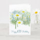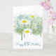 Close-up of white daisies in a country meadow with a watercolor abstract frame on white for a 65th birthday