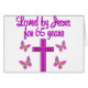 This cheerful 65 year old loves Jesus every day of her holy and religious life. This enchanting special lady has been loved by Jesus for 65 years. Enjoy this beautiful pink and purple butterfly and cross 65th birthday design on Tees, Mugs, Tote Bags and Gifts. Your amazing 65 year old will adore this unique and one of a kind 65th customised birthday gift that she will treasure every year. Celebrate turning 65 with a beautiful 65th birthday prayer. Give the gift of an original 65th birthday design to rejoice in turning 65.