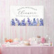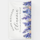 Elegant summer watercolor blue larkspur flowers create a beautiful floral border at the bottom of this happy birthday banner. Larkspur or delphinium flowers are the July birth flower. A trendy font combination gives it a modern aesthetic. All of the text is editable.