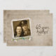 Vow Renewal ceremony invitation for 65th wedding anniversary. Old-fashioned snapshot with pearls and daisy bouquet on music sheet background.