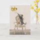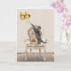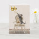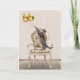 Grey tabby cat with gold foil balloons on an old-fashioned chair for 66th birthday.