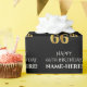 This luxurious and elegant birthday themed wrapping paper design has the message "HAPPY 66th BIRTHDAY,", an editable name, and the birthday number "66th" having a faux/imitation gold inspired look pattern. The background is coloured black. Wrapping paper like this might be used when preparing gifts to be given in celebration of somebody’s 66th birthday. [~Z0000454]