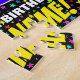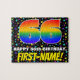 This joyful and eye-catching birthday-themed jigsaw puzzle design features a large number “66” with a multicolored rainbow spectrum inspired gradient pattern, along with the message “HAPPY 66th BIRTHDAY,”, and a customisable recipient name. The background has a bold, multicolored star shapes pattern. An upbeat, customised birthday puzzle like this might be a fun way to deliver birthday wishes to somebody who is celebrating their sixty-sixth birthday. [~Z0000607]