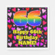 This joyful and colourful birthday themed paper napkin design features a large number “66” with a rainbow spectrum gradient inspired pattern, along with the message “Happy 66th Birthday,”, and a personalised name. The background features a pattern of purple, pink, and red heart shapes. Cheerful, friendly paper napkins like this might be fun to use at a birthday party/celebration being held in celebration of somebody’s 66th birthday. [~Z0000550]