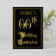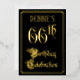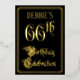 The front of this luxurious and elegant foil sixty-sixth birthday celebration invitation design features the message “66th Birthday Celebration” in opulent script-style text. It also features an editable name. The background of the front is coloured black by default (although it can be customised to a different colour). The back features personalised details about the event, such as the date, time, location, and any other information that may be relevant. Fancy, opulent, editable invitations like these might be used to invite guests to a birthday party/celebration being held to honour somebody’s 66th birthday. [~Z0000589]