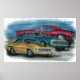This print entitled "'67, '68 & '69 Camaros" reflects an era gone by but still sought after today. The original design was done in pecil, watercolor & airbrushed.