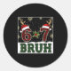 67 Bruh Funny Christmas Plaid Antlers Santa Hat Me Classic Round Sticker