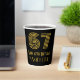 This vintage look and Roaring Twenties inspired birthday-themed paper cup design features a large art deco inspired style number “67”, in addition to the birthday greeting message “Happy 67th Birthday,” and a customisable name. It also has a black-coloured background. Birthday themed paper cups like this might be used at a party celebrating somebody’s 67th birthday. [~Z0000546]