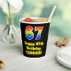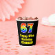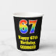 This exciting and fun birthday paper cup design features a large number “67” having a rainbow spectrum gradient inspired pattern. It also features the message “Happy 67th Birthday,”, and an editable name. The background is coloured black. Vibrant, colourful paper cups like this might be fun to use at a birthday celebration being held to honour somebody’s sixty seventh birthday. [~Z0000537]