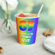 This cheerful and exciting birthday themed paper cup design features a large number “67” with a colourful rainbow spectrum inspired gradient pattern, along with the message “HAPPY 67th BIRTHDAY,”, and an editable name. The background also features a joyful multicolored rainbow spectrum inspired gradient pattern. Fun paper cups like this might be fun to use at a party in honour of somebody’s sixty seventh birthday. [~Z0000576]