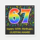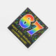 This fun, vibrant, and colourful birthday paper napkin design features a large number "67" with a rainbow spectrum gradient inspired pattern, along with the message "Happy 67th Birthday,", and a personalised name. Part of the background features a pattern of various music notes and symbols having a variety of colours and sizes. Fun, customised paper napkins like this might be used at a party being held to celebrate a musician’s, a singer’s, a composer’s, or somebody else’s 67th birthday. [~Z0000421]