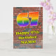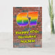 This exciting and vibrant urban street art and graffiti themed birthday greeting card design features a large number “67” having a multicolored rainbow spectrum gradient inspired pattern. It also features the message “Happy 67th Birthday,”, and an editable name. The background of the front features a brick wall pattern. The inside features a custom birthday greeting message, or could perhaps be cleared and left blank if a message is to be written by hand instead. A colourful, customised birthday greeting card like this might be sent to celebrate somebody’s sixty-seventh birthday. [~Z0000586]