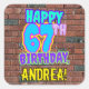 This fun birthday themed square sticker design features the message “HAPPY 67TH BIRTHDAY,” having a colourful, vibrant, urban street art and graffiti inspired appearance, along with a custom recipient name. The background features a brick wall inspired pattern. Fun, personalised stickers like this might be given as a birthday present, or used while wrapping presents, or perhaps used as a birthday party decoration when celebrating somebody’s 67th birthday. [~Z0000535]