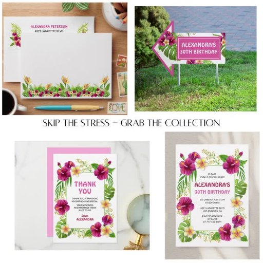 67th birthday invitations Tropical Party Luau Pink hibiscus