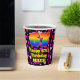 This happy and cheerful birthday-themed paper cup design features a large number “67” having a rainbow spectrum gradient inspired pattern. It also features the message “Happy 67th Birthday,”, and a customisable name. The background features a pattern of purple, pink, and red heart shapes. Loving, joyful paper cups like this might be fun to have at a birthday celebration/party being held in celebration of somebody’s sixty seventh birthday. [~Z0000548]