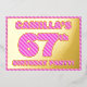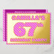 The front of this fun and bold sixty-seventh birthday celebration/party foil invitation card features an editable name, a large number “67th”, the message “BIRTHDAY PARTY!”, and a border, all featuring a feminine light pink and dark pink striped pattern. The back features personalised details about the event, such as the date, time, place/venue, and any other relevant information. Customisable invitations like these might be used to invite guests/attendees to a birthday gathering/party being held in celebration of somebody’s 67th birthday. [~Z0000597]