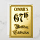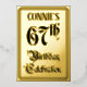 The front of this elegant and luxurious sixty-seventh birthday party foil announcement/invitation card design features the message “67th Birthday Celebration” in fancy script-style text. It also features a customisable name. The back features personalised details about the event, such as the date, time, venue, and any other relevant information. Fancy, elaborate, editable invitations like these might be used to invite guests to a birthday celebration being held to celebrate somebody’s 67th birthday. [~Z0000596]
