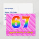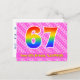 67th Birthday: Pink Stripes & Hearts, Rainbow 67 Postcard