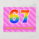 The front of this cheerful, loving, and happy birthday postcard design features a large number "67" having a rainbow spectrum gradient inspired pattern. It also features the message "Happy 67th Birthday,", and a customisable recipient name. The front additionally has a joyful pattern of dark pink and light pink heart shapes and stripes. The back features a customised birthday greeting message, or could perhaps be cleared and left blank if a message is to be written by hand instead. A birthday postcard like this might be a fun way to send birthday wishes to somebody who is celebrating their sixty seventh birthday. Postcards like this might also be used to invite guests to a birthday party being held for somebody who is turning 67 years old. [~Z0000449]