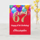 67th Birthday Red and Gold Colourful Balloons Card