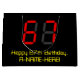This silly and geeky birthday-themed gift bag design features a large number "67" with a red seven segment digital display inspired look, along with the message "Happy 67th Birthday," and a custom name in geeky computing-inspired yellow text, on a black coloured background. A personalised gift bag like this might be used for wrapping gifts or presents being given to somebody who is celebrating their sixty seventh birthday. [~Z0000389]